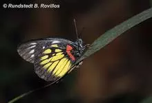 报喜斑粉蝶是粉蝶科斑粉蝶属的一种动物,又名红肩粉蝶、藤粉蝶等。幼虫群集性很强,从同一卵块孵化出的幼虫,幼龄期全部群集在一起取食,高龄幼虫常分散成小群。幼虫群集危害叶片,造成秃枝,严重者可将树吃成光杆,…全部>>