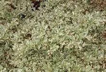 金边黄杨是卫矛科卫矛属的常绿灌木或小乔木,金边黄杨小枝略为四棱形,枝叶密生;单叶对生,倒卵形或椭圆形,边缘具钝齿,表面深绿色,有光泽;聚伞花序腋生,具长梗,花绿白色;蒴果球形,淡红色;花期5~6月。…全部>>