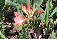 粉美人蕉:是一种球根草本植物。根茎延长,株高1.5-2米;茎绿色。叶片披针形;总状花序疏花,单生或分叉,稍高出叶上;苞片圆形,褐色,花黄色,无斑点;有多种园艺栽培品种,颜色从粉、橙红色及具带红色斑点…全部>>