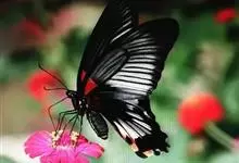 玉斑凤蝶Papilio helenus 别名白纹凤蝶,是凤蝶科凤蝶属美凤蝶亚属大型种类。雌雄同型;体翅皆黑色,后翅正面中室外有3个并列的白色斑,亚外缘有1列模糊的新月形红色斑,…全部>>
