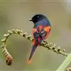 灰喉山椒鸟:共有8个亚种。体长18-22厘米。雄鸟头部和背亮黑色,腰、尾上覆羽和下体朱红色,翅黑色具一大一小的两道朱红色翼斑。中央尾羽黑色,外侧尾羽基部黑色,端部红色。…全部>>