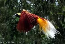 大极乐鸟是极乐鸟属中最大的鸟种。成年雄鸟体长可达到43厘米,雌性可达35厘米。雄鸟的额、颊、喉等墨绿色;头、颈黄色;上体暗赤栗色;腹部葡萄红色,胁部有长饰羽,其基部橙黄,中部黄色,…全部>>
