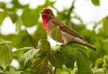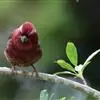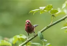 酒红朱雀小型鸟类,体长13~15厘米。雄鸟通体深红色,头部深朱红或棕红色,下背和腰玫瑰红色,眉纹粉红色而具丝绢光泽。两翅和尾黑褐或灰褐色、具暗红色狭缘,内侧两枚三级飞羽具淡粉红色先端。…全部>>