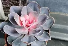 紫珍珠是景天科石莲花属的多年生肉质草本植物。植株中小型;叶片肉质,匙形,呈莲座状紧密排列;叶片粉紫色,叶缘呈粉白色,光照充足时颜色亮丽,不足时叶色会呈现深绿色或灰绿色,叶面光滑,被轻微白粉,…全部>>