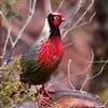 血雉雉科血雉属鸟类,别名血鸡、松花鸡,血雉的雄鸟大覆羽、尾下覆羽、尾上覆羽、脚、头侧、腊膜为红色,故称血雉。其别名甚多,各地皆异。在甘肃,因其胸侧和翅上覆羽沾绿,被称为“绿鸡”;因其羽毛形似柳叶,…全部>>