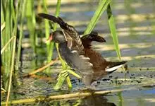 黑水鸡:是鹤形目、秧鸡科的鸟类,共有12个亚种。中型涉禽,体长24-35厘米。嘴长度适中,鼻孔狭长;头具额甲,后缘圆钝;嘴和额甲色彩鲜艳。翅圆形,第2枚初级飞羽最长,或第2枚和第3枚初级飞羽等长,…全部>>