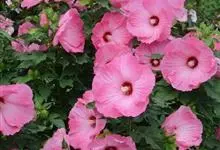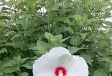 芙蓉葵是锦葵科木槿属植物,又名草芙蓉、大花秋葵,原产于北美。落叶灌木状。叶大、广卵形,叶柄、叶背密生灰色星状毛。花大,单生于叶腋,有白、粉、红、紫等色。喜阳、略耐阴,宜温暖湿润气候,忌干旱,耐水湿,…全部>>