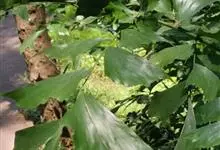 鱼尾葵,棕榈科鱼尾葵属植物。鱼尾葵幼叶近革质,老叶厚革质;羽片互生,罕见顶部的近对生,最上部的羽片大,呈樱形,侧边的羽片小,菱形似鱼尾。外缘笔直,花聚生3朵,花瓣黄色;萼片宽圆形;花药线形,黄色,…全部>>
