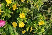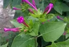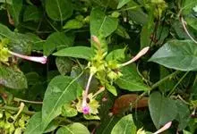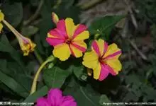 即紫茉莉,英文名:Four-o'clock,Marvel of Peru,为紫茉莉科、紫茉莉属多年生草本植物,一年生栽培。株高50~80cm。根粗壮,茎多分枝而散生。叶对生,卵形或心脏形。花数朵簇生…全部>>