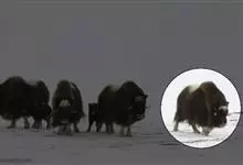 麝牛,是偶蹄目牛科麝牛属哺乳动物。麝牛体型大,但低矮粗壮,头大,吻部宽,眼小;雌雄均具角,四肢短粗,蹄宽大;毛被厚,极耐寒,尾短。雄麝牛在发情时会散发出一种类似麝香的气味,又称麝香牛。…全部>>