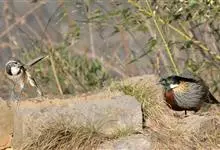 血雉雉科血雉属鸟类,别名血鸡、松花鸡,血雉的雄鸟大覆羽、尾下覆羽、尾上覆羽、脚、头侧、腊膜为红色,故称血雉。其别名甚多,各地皆异。在甘肃,因其胸侧和翅上覆羽沾绿,被称为“绿鸡”;因其羽毛形似柳叶,…全部>>