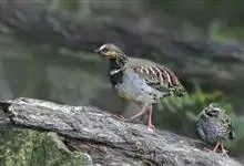 石鸡是鸡形目雉科鹑石鸡属鸟类,又称呱呱鸡、朵拉鸡、嘎嘎鸡、红腿鸡。体型中等。整体呈灰色;眼黑色,眼周红色;头颈部有一黑色带,自眼先起,过眼至眼后,下延至颈侧,在胸前与另一侧黑带闭合;两胁白色,…全部>>
