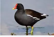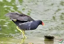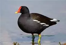 黑水鸡:是鹤形目、秧鸡科的鸟类,共有12个亚种。中型涉禽,体长24-35厘米。嘴长度适中,鼻孔狭长;头具额甲,后缘圆钝;嘴和额甲色彩鲜艳。翅圆形,第2枚初级飞羽最长,或第2枚和第3枚初级飞羽等长,…全部>>