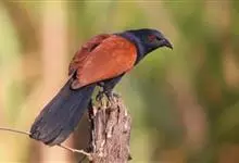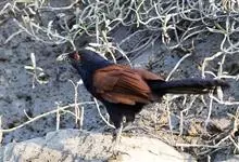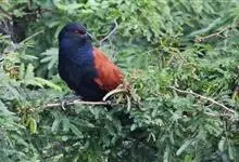 褐翅鸦鹃,是鹃形目鸦鹃科鸦鹃属的鸟类。褐翅鸦鹃的身体为黑色;头颈和胸带蓝紫色金属光泽并具黑亮的羽干纹,下胸至腹部泛金属绿光泽;两翼和肩部为棕栗色,外侧飞羽具暗色羽端,尾羽闪铜绿色光泽;虹膜赤红色,…全部>>