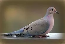 哀鸽,又名“泣鸽、哀鸠”,是鸠鸽科哀鸠属的鸟类动物。体形修长,全身羽毛为浅灰褐色,翅膀下部颜色较浅,尾羽尖,翅膀上有几块黑色的斑点,头和胸腹部为粉红色。雄性哀鸽在颈部两侧各有一小片具有金属光泽的羽毛。…全部>>