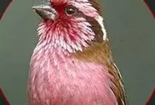 酒红朱雀小型鸟类,体长13~15厘米。雄鸟通体深红色,头部深朱红或棕红色,下背和腰玫瑰红色,眉纹粉红色而具丝绢光泽。两翅和尾黑褐或灰褐色、具暗红色狭缘,内侧两枚三级飞羽具淡粉红色先端。…全部>>