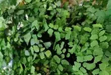 铁线蕨,铁线蕨科铁线蕨属多年生草本植物,其根状茎横走,披棕色披针形鳞片;叶片卵状三角形,顶端钝圆并有细锯齿,叶脉扇状分叉;孢子囊群生于囊群盖下面;无花,以孢子繁殖花色;分株繁殖为主,生长期均可,…全部>>