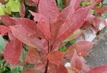 红叶石楠 是蔷薇科,石楠属杂交种,为常绿小乔木或灌木,乔木高可达5米、灌木高可达2米。叶片革质,长圆形至倒卵状、披针形,叶端渐尖,叶基楔形,叶缘有带腺的锯齿,花多而密,复伞房花序,花白色,梨果黄红色,…全部>>