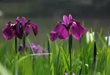 花菖蒲:是玉蝉花的变种。多年生宿根挺水型水生花卉。根状茎短而粗,须根多并有纤维状枯叶梢,叶基生,线形,叶中脉凸起,两侧脉较平整。花葶直立并伴有退化叶1-3枚。花大直径可达15厘米。外轮三片花瓣呈椭圆…全部>>