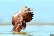 栗树鸭体长37-42厘米,体重400-600克,是中等体型的红褐色鸭。头顶深褐,头及颈皮黄色,背褐而具棕色扇贝形纹,下体红褐。左右翅各有1枚形状特殊的飞羽,飞行中与空气摩擦能发出轻而尖的啸声。…全部>>