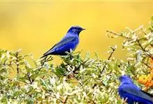 蓝大翅鸲是鹟科、大翅鸲属小型鸟类,体长19-21厘米。两翅尖长。雄鸟通体鲜紫蓝色具金属光泽。两翅和尾黑色。雌鸟上体灰褐色,头、颈、翕具棕白色纵纹,翅上有白色翅斑。虹膜暗褐色,嘴、脚黑色。…全部>>
