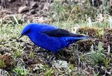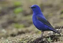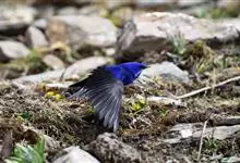 蓝大翅鸲是鹟科、大翅鸲属小型鸟类,体长19-21厘米。两翅尖长。雄鸟通体鲜紫蓝色具金属光泽。两翅和尾黑色。雌鸟上体灰褐色,头、颈、翕具棕白色纵纹,翅上有白色翅斑。虹膜暗褐色,嘴、脚黑色。…全部>>