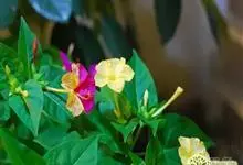 即紫茉莉,英文名:Four-o'clock,Marvel of Peru,为紫茉莉科、紫茉莉属多年生草本植物,一年生栽培。株高50~80cm。根粗壮,茎多分枝而散生。叶对生,卵形或心脏形。花数朵簇生…全部>>