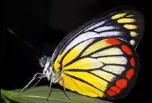 报喜斑粉蝶是粉蝶科斑粉蝶属的一种动物,又名红肩粉蝶、藤粉蝶等。幼虫群集性很强,从同一卵块孵化出的幼虫,幼龄期全部群集在一起取食,高龄幼虫常分散成小群。幼虫群集危害叶片,造成秃枝,严重者可将树吃成光杆,…全部>>