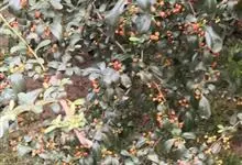 火棘 H. L. Li)是蔷薇科火棘属常绿灌木,老枝呈暗褐色;叶片呈倒卵形,边缘有钝锯齿,齿尖向内弯,两面皆无毛;叶柄短,无毛或嫩时有柔毛;花序是复伞房状,花瓣呈白色近圆形;果球近圆形,…全部>>