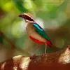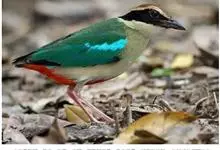 绿胸八色鸫:是雀形目八色鸫科的鸟类,共有12个亚种。体长为16-18厘米,体重65-69克。体型圆胖,尾短,腿长。头黑,上体绿色,两翼深色而具白色斑纹,头顶至后枕深褐,胸及腹部苹果绿,臀亮红。…全部>>