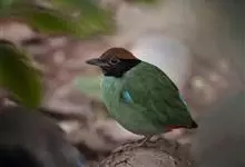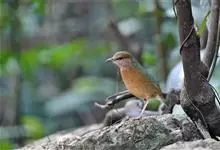 栗头八色鸫又叫锅巴雀,体长为24-26厘米,体重100-135克,是雀形目八色鸫科的鸟类。体型圆胖,尾短,腿长,常在森林底层或低植被中找食无脊椎动物。叫声简单哀婉。…全部>>