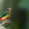 蓝翅八色鸫是雀形目八色鸫科的鸟类。体长17-20厘米,体重类约48-70克,体型圆胖,尾短,腿长,以身体具有红、绿、蓝、白、黑、黄、褐、栗等鲜艳夺目,丰富艳丽的色彩而得名,是很有观赏价值的鸟类。主要…全部>>