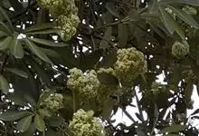 石楠 Kalkman),是蔷薇科石楠属的常绿乔木,高5~12米,株型紧凑,树冠圆球形。树枝为褐灰色;鳞片为褐色,没有毛;叶片革质,长椭圆至侧卵状椭圆形,有锯齿,新叶红色光亮。复伞房花序,白色小花,…全部>>
