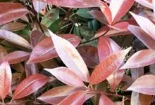 红叶石楠 是蔷薇科,石楠属杂交种,为常绿小乔木或灌木,乔木高可达5米、灌木高可达2米。叶片革质,长圆形至倒卵状、披针形,叶端渐尖,叶基楔形,叶缘有带腺的锯齿,花多而密,复伞房花序,花白色,梨果黄红色,…全部>>