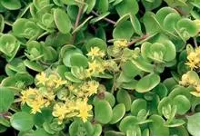 圆叶景天,景天科常绿多年生肉质草本植物,匍匐型生长,叶片对生,尖端钝圆,全光照条件下,叶片秋季变红,花瓣黄色或白色,花期4至6月。喜向阳和偏干环境,只要栽培在向阳、偏干的地方,就能茂盛生长;抗寒性强,…全部>>
