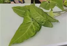 合果芋是天南星科,合果芋属多年生常绿草本植物,合果芋的茎节具气生根,攀附他物生长。叶片呈两型性,箭形或戟形;叶基裂片两侧常着生小型耳状叶片。佛焰苞浅绿或黄色。合果芋一般不易开花。…全部>>