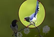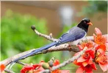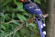 红嘴蓝鹊,别名山鹊、长尾鹊,是鸦科蓝鹊属的一种观赏性较强的大型鸣禽。该物种为体长54~65cm,头、颈、喉和胸黑色,头顶至后颈有一块白色至淡蓝白色或紫灰色块斑,其余上体紫蓝灰色或淡蓝灰褐色。尾长呈凸状,…全部>>