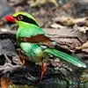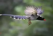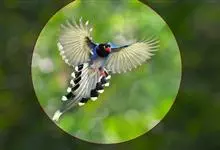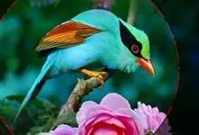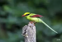 蓝绿鹊:中型鸟类,共有5个亚种。体长36-38厘米。尾长,嘴、脚红色。通体羽色主要为草绿色,宽阔的黑色贯眼纹向后延伸到后颈,在绿色的头侧极为醒目。两翅栗红色,内侧飞羽具黑色次端斑和白色尖端。尾绿色,…全部>>
