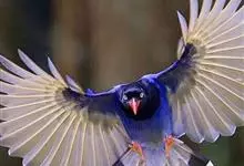 台湾蓝鹊:体长64至65厘米,翼展18至21厘米,尾长约40厘米,尾羽长占了总体长的三分之二。头、脸、颈、喉、胸都是黑色,黄色的眼珠包围黑色的瞳孔,鲜红色的鸟喙、双脚,…全部>>