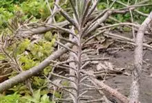 棒叶落地生根是景天科、落地生根属植物。茎直立、粉褐色。叶圆棒形,上表面有沟、粉色,有红褐斑。叶片交互对生,交叉排列成十字形。叶端锯齿上长有很小的幼株、落地后即可生根成活。原产非洲马达加斯加。…全部>>