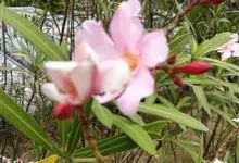 夹竹桃,又名红花夹竹桃、欧洲夹竹桃,是夹竹桃科夹竹桃属的一种常绿直立大灌木,枝条灰绿色,含水液。叶披针形,3叶轮生。聚伞花序顶生,花冠粉红至深红色,花冠漏斗状,有特殊香味。蓇葖果,圆柱形。种子长圆形,…全部>>