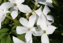 素馨花,木犀科素馨属多年生的攀援灌木植物。攀援灌木,小枝圆柱形,具棱或沟;叶对生,叶轴常具窄翼,小叶片卵形或长卵形;聚伞花序顶生或腋生,花序梗长,苞片线形,花萼无毛,裂片锥状线形,花冠白色,…全部>>