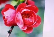 贴梗海棠Nakai)是蔷薇科、木瓜海棠属植物。落叶灌木,高达2米,枝条直立开展,有刺。叶片卵形至椭圆形,稀长椭圆形,长3-9厘米,宽1.5-5厘米。花先叶开放,3-5朵簇生于二年生老枝上。…全部>>