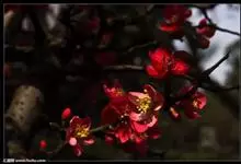 贴梗海棠 Nakai)是蔷薇科、木瓜海棠属植物。落叶灌木,高达2米,枝条直立开展,有刺。叶片卵形至椭圆形,稀长椭圆形,长3-9厘米,宽1.5-5厘米。花先叶开放,3-5朵簇生于二年生老枝上。…全部>>