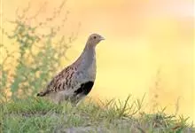 斑翅山鹑,俗称沙半鸡、沙斑鸡,体长250-310毫米,是体形略小的灰褐色鹑类。雄鸟的脸、喉中部及腹部桔黄色,腹中部有一倒“U“字形黑色斑块。与灰山鹑的区别在于胸为黑色而非栗色,喉部桔黄色延至腹部,…全部>>