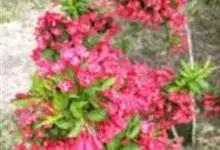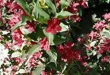 红王子锦带花是忍冬科锦带花属的落叶开张性灌木。株高1 -2米;嫩枝淡红色,老枝灰褐色;单叶对生,呈椭圆形,先端渐尖,叶缘有锯齿,红枝及叶脉具柔毛;花冠漏斗状钟形,花冠筒中部以下变细,聚伞花序,…全部>>