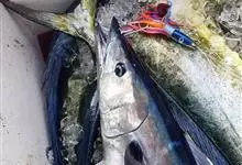 蓝点马鲛,又名鲅鱼、马交、燕鱼,是鲭科马鲛属的一种暖水性大型中上层洄游鱼类。体呈纺锤形,一般体长25~50厘米,最大体长可达1米,重4.5千克以上。体被细小圆鳞,易脱落,背部呈铅蓝色,…全部>>