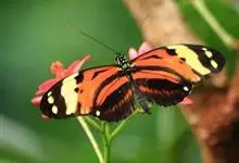 黑脉金斑蝶:翅阔8.6-12.4厘米。雄蝶较雌蝶为大。成年蝶颜色鲜艳,翅膀上有显眼的橙色及黑色斑纹,周围是宽阔的黑色边框,布有许多白色斑点。这种引人注目的着色是对捕食者的视觉警告,表示这个物种有毒;…全部>>