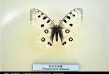 阿波罗绢蝶:翅展约7-8.4厘米。前翅较圆,白垩色,翅表有许多黑点、灰白斑及无鳞透明区,这些斑点的形状、密度及其强度常随产地的不同而有所变化,但后翅通常总有显著的鲜红色斑点。触角主干灰白色,…全部>>