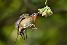 红点颏:是鸟纲、鹟科的鸣禽。又名西伯利亚歌鸲。体长14-17厘米,体重16-27克。雄鸟头部、上体主要为橄榄褐色。眉纹白色。颏部、喉部红色,周围有黑色狭纹。胸部灰色,腹部白色。雌鸟颏部、喉部不呈赤红色,…全部>>